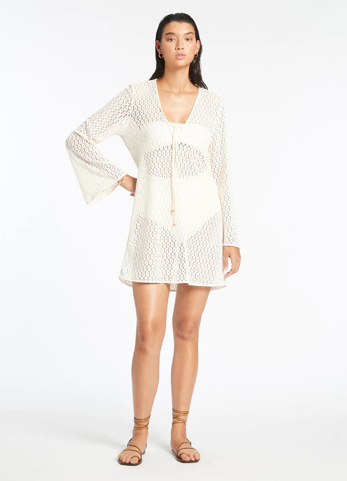 As it’s breathable, lace is perfect for hot weather or as a trans-seasonal fabric, which is why we are seeing it donned overseas in cooler climates. How best to wear lace in the hot weather? Resort wear is in, according to Cimon.