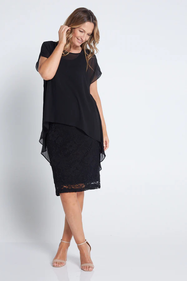 Enjoy a glamorous night with this sleek, black lace dress; an elevated yet breathable look for warmer weather