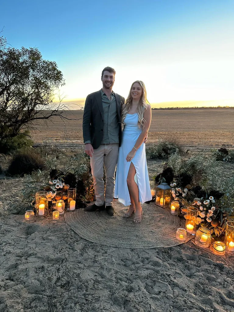 From there, we went to 2022’s Farmer Harry’s farm. He had chosen Tess. After moving to the Gold Coast to be with her while she finished her studies, they were back on the farm.